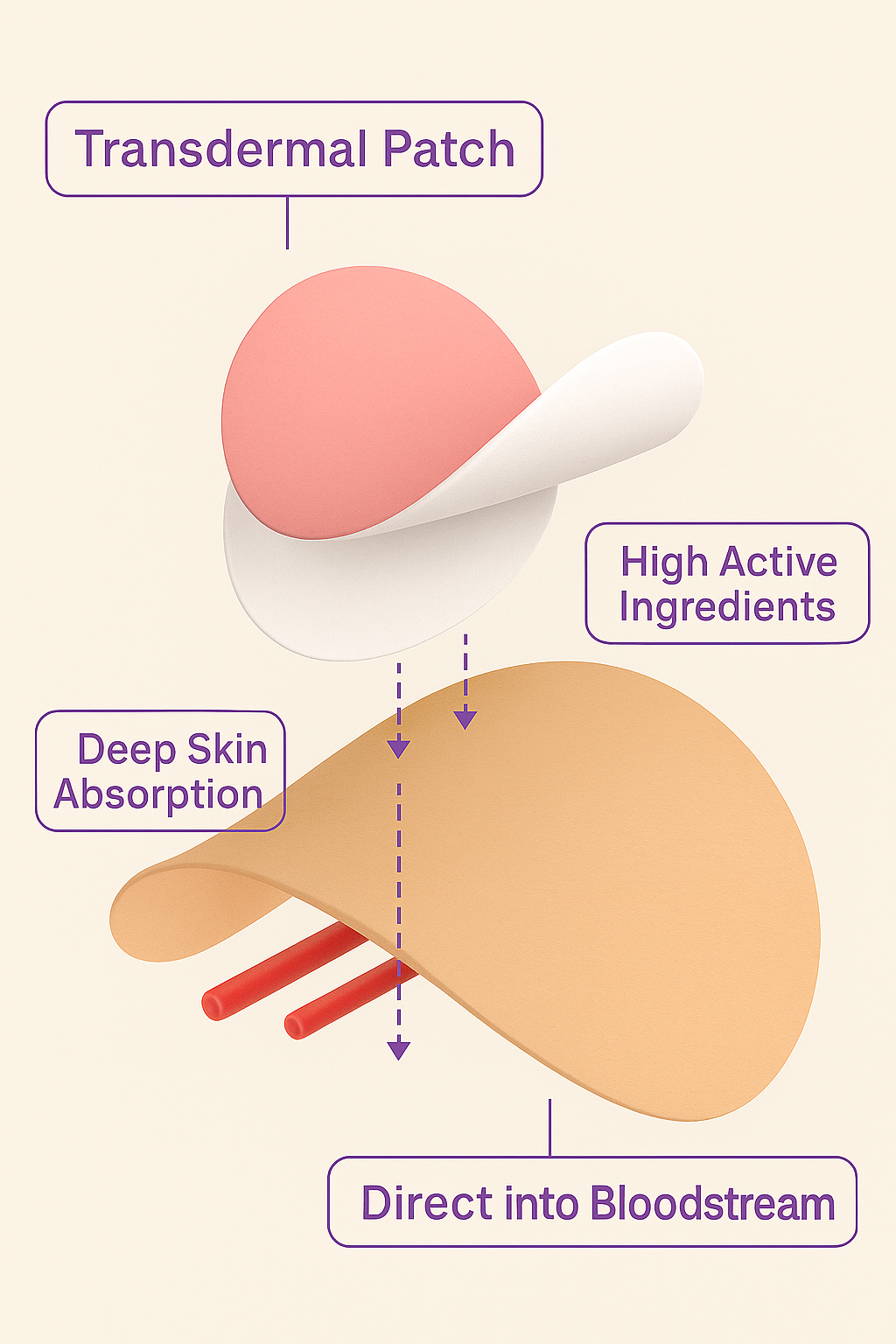 Patches deliver active ingredients directly into the bloodstream, improving absorption while bypassing the digestive system.